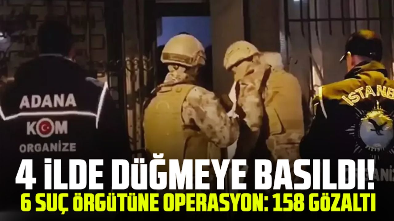 İçişleri Bakanı Yerlikaya, sosyal medya hesabından yaptığı açıklamada, 6 ayrı organize suç örgütü üyesi 158 şüphelinin yakalandığını belirterek, Adana’da S.B.’nin, İstanbul’da H.Y. ve B.B.’nin (yurt dışında tutuklu), Antalya’da A.B.’nin, İzmir’de S.A. (yurt dışında) ve U.G’nin (cezaevinde) elebaşılığını yaptığı 6 ayrı organize suç örgütü üyelerine yönelik operasyonlar düzenlendiğini kaydetti.