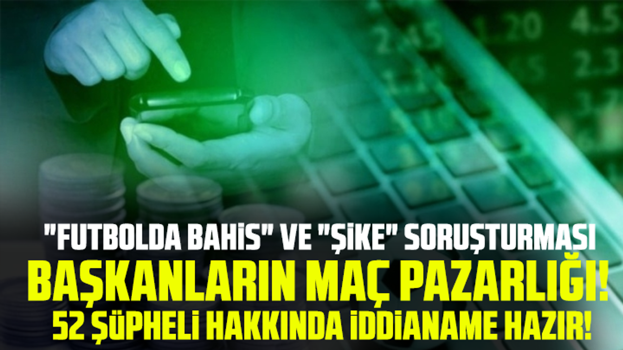 İstanbul Cumhuriyet Başsavcılığı tarafından yürütülen "Futbolda bahis" ve "Şike" soruşturması kapsamında 5'i tutuklu 52 şüpheli hakkında iddianame hazırlandı.