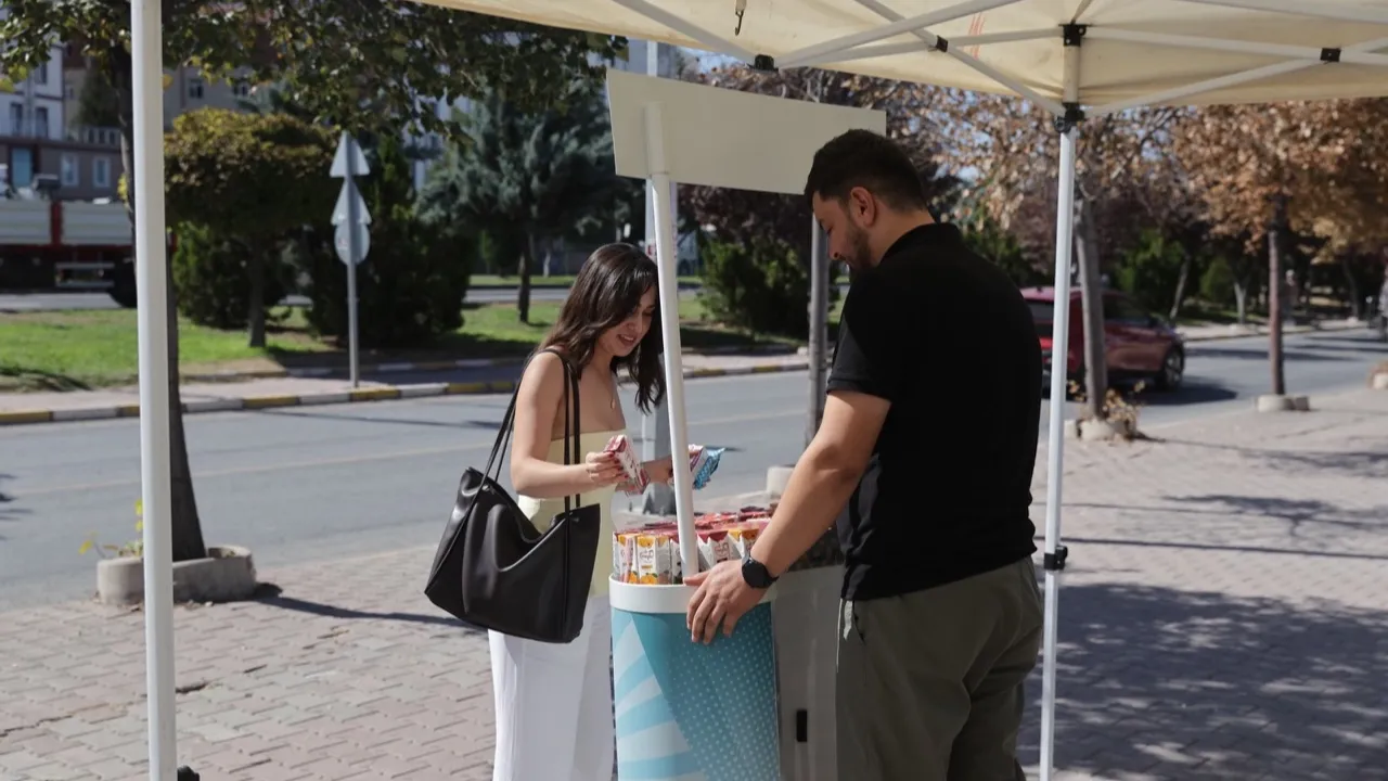 Hoş geldiniz etkinliği kapsamında öğrencilere üniversite girişinden bulunan Nevşehir Belediyesi standında çeşitli ikramlar yapılarak kentin manevi değerleri tanıtılıyor.