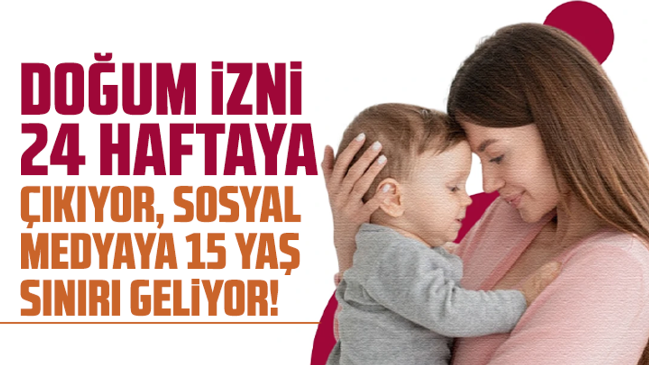 TBMM'de bu hafta Genel Kurul ve komisyon çalışmaları salı günü başlayacak. Genel Kurul, doğum izni ve sosyal medyaya 15 yaş düzenlemesini de içeren, 'Sosyal Hizmet Kanunu ve Bazı Kanunlarda Değişiklik Yapılmasına Dair Kanun Teklifi'nin görüşmelerine devam edecek. Geçen hafta ilk 6 maddesi kabul edilen teklife göre; kadınlara verilecek doğum izni süresi 16 haftadan 24 haftaya çıkarılacak. Düzenlemenin yürürlüğe girdiği tarih itibarıyla analık izni süresi dolmuş ancak doğumun gerçekleştiği tarihten itibaren 24 haftalık süresi henüz tamamlanmamış olan personele, talepleri halinde 8 hafta ilave analık izni verilebilecek. İşçiye, eşinin doğum yapması halinde verilecek ücretli izin süresi 5 günden 10 güne yükseltilecek. Bir veya daha fazla çocuğa koruyucu aile olan memura, çocuğun teslim edildiği tarihten sonra isteği üzerine 10 gün izin verilecek.